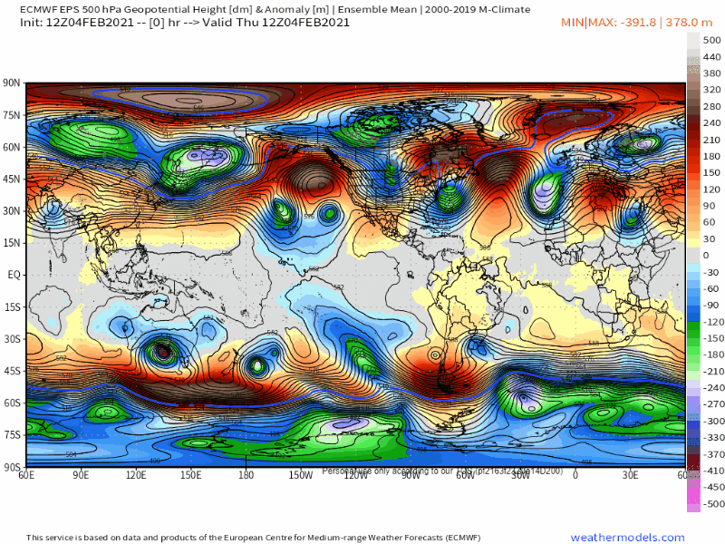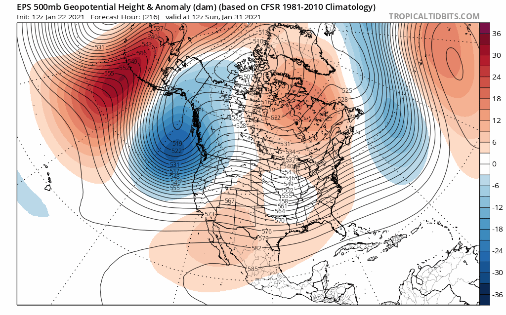 EPS mean forecast 500mb height anomalies valid January 12