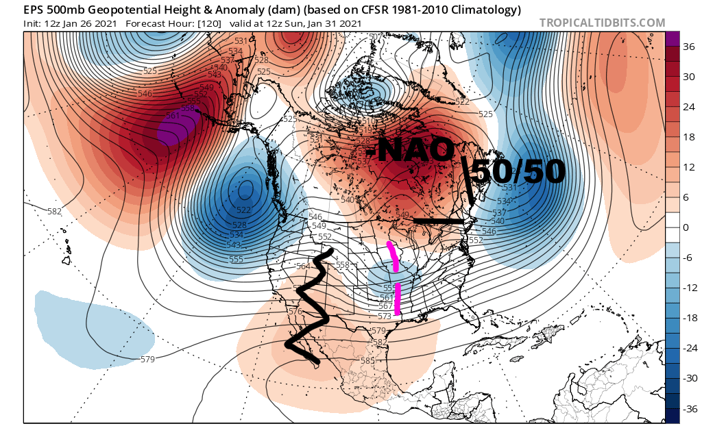 This period of potential blocking, aided strongly by tropical forcing along with a recent +East Asian Mountain Torque that really beefed up the sub-tropical jet, has been talked about many (including myself) since November. I personally was not as sold on legitimate NAO blocking, but that does seem likely to occur this weekend through next week.