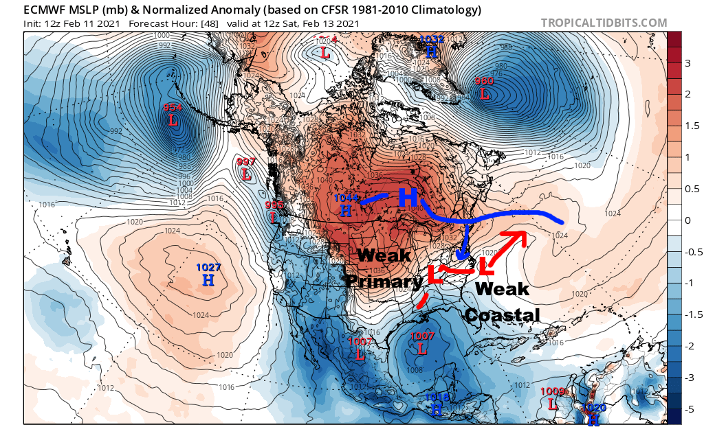 Otherwise, how the Monday system pans out will also impact this second threat. A stronger Monday system may force this system farther south, turning it into more of a Mid Atlantic problem and perhaps limiting how far north any snow can get. A weaker Monday system could weaken the confluence over Canada enough to allow the primary to cut a bit more, which would limit the threat on the southern extent by pumping in more warm air before the coastal tries to form.