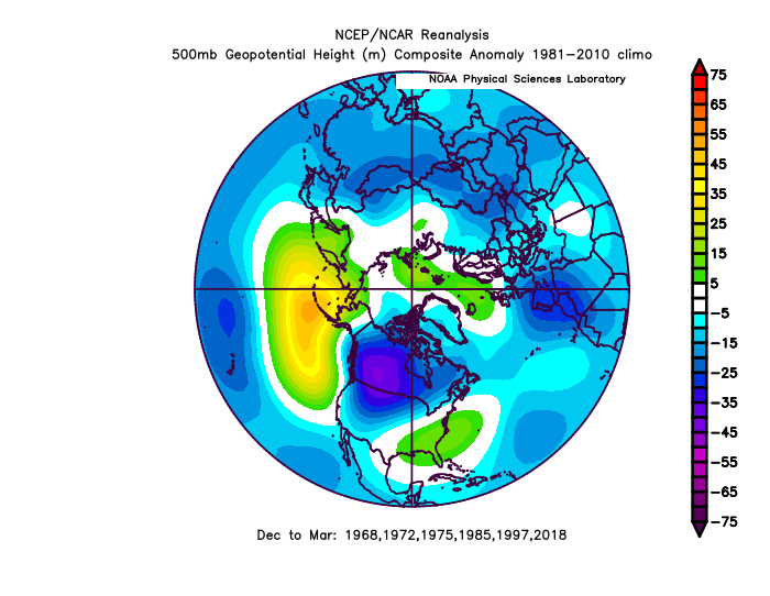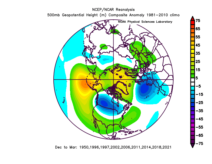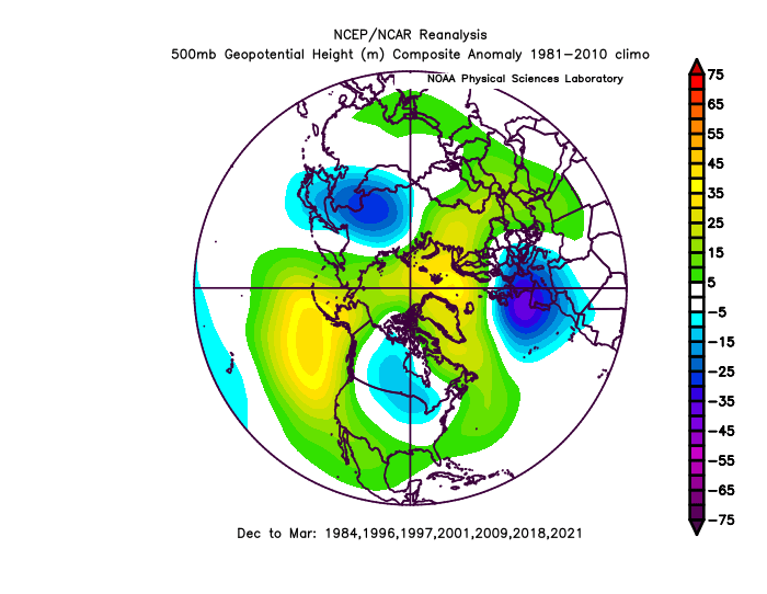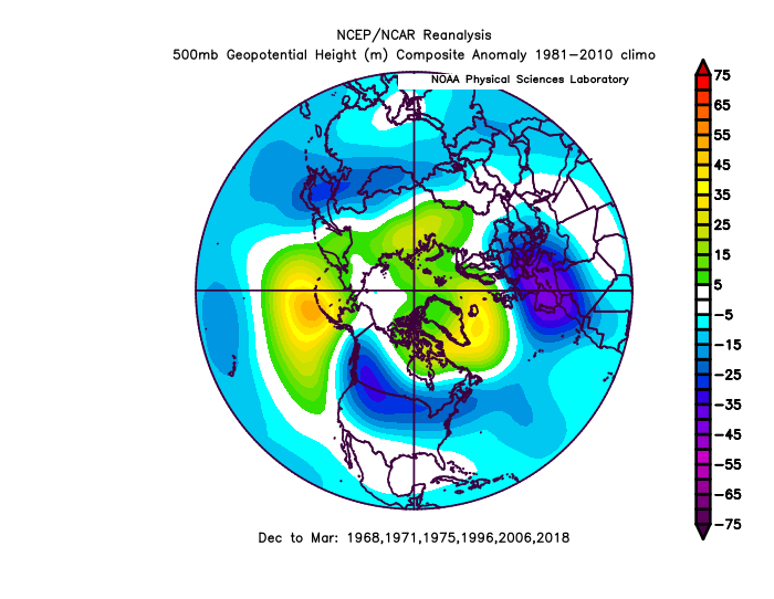 The Euro is almost a dead ringer to the “variable” or closer to neutral AO analogs, with a definite -EPO and negative leaning AO overall, but a +NAO allowing for the Southeast ridge to flex more. The UKMET is a little farther west with the ridging over the Pacific and starts sagging the TPV into more dangerous territory over western Canada. It’s too neutral with the NAO for a strong SE ridge not to crop up. The JMA looks more like the -AO years, with a bit more of a negative near Japan and also decent ridging near the North Pole, extending towards Greenland. It has the trough the farthest southeast over North America overall.
