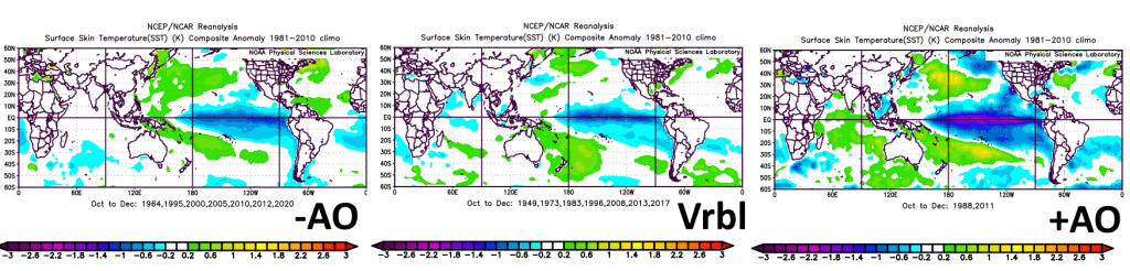 Overall, the variable AO look among the analogs is the one I’m currently keying in on, though enough supports a more -NAO too that the analogs that featured a -NAO and were much cooler into the Gulf Coast, Southeast and Mid Atlantic aren’t off the table yet. It currently seems unlikely that we’re moving towards the +AO analogs.