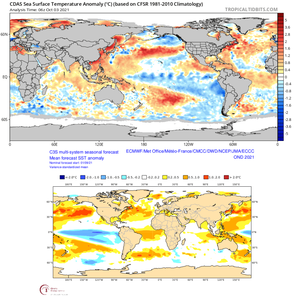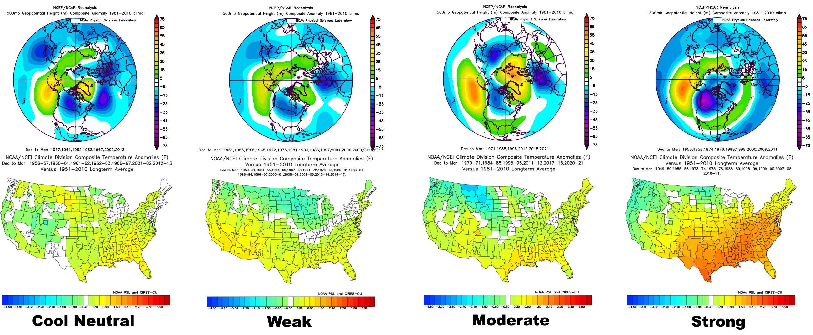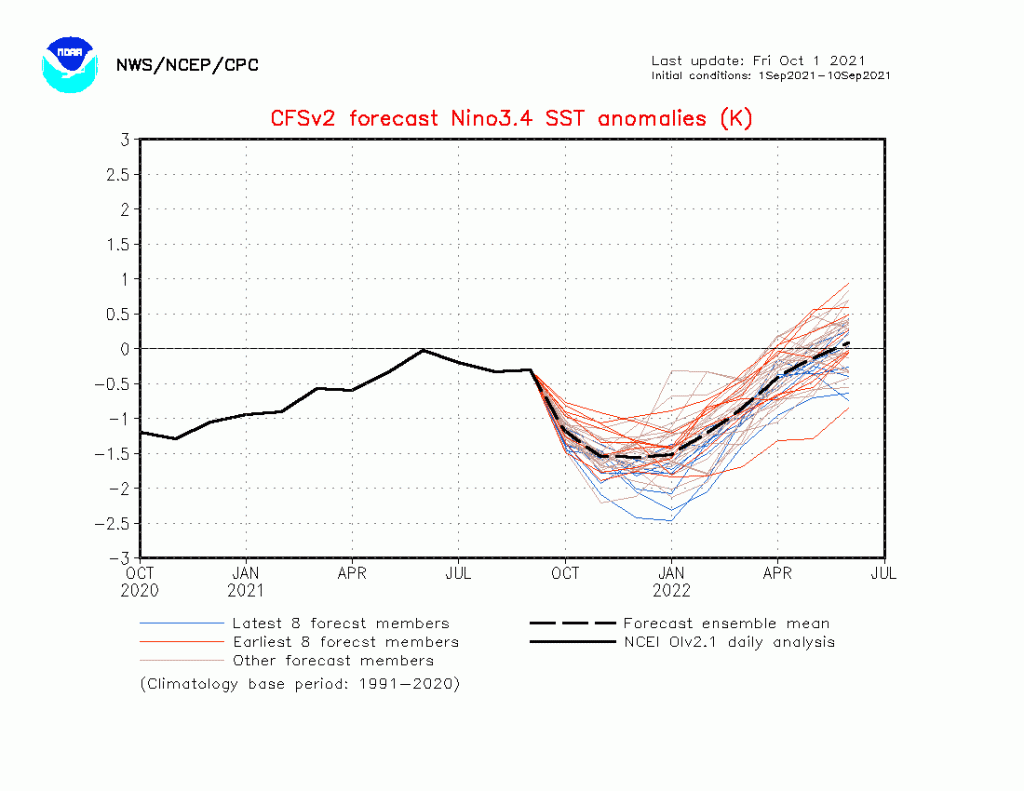 Recent CFS runs valid December – February 2021-22: 700mb height and temperature anomaly forecasts