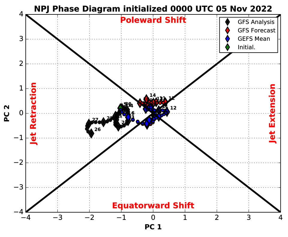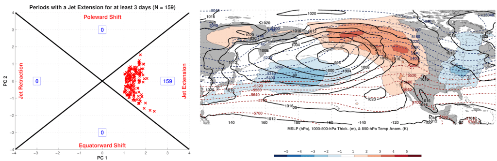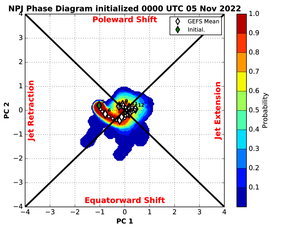 Note how the Pacific jet begins extending again around January 15th as the EAMT starts switching. The Atlantic jet also extends late in the loop. Tropical forcing working into the Pacific mid-late January is also helping extend the jet.