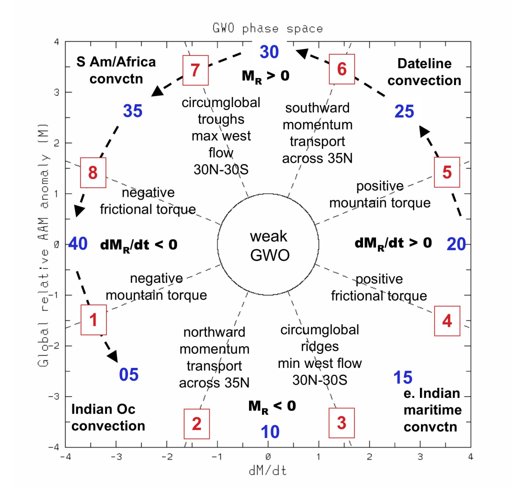 The recent/ongoing north Pacific jet retraction and upcoming north Atlantic jet retraction can be seen on the above 250mb wind loop, focusing on the core of the jets. The recent extension of both jets, followed by a retraction and need to disperse this momentum through a series of strong mid-latitude cyclones/wave breaks, was directly caused by recent tropical forcing and mountain torque activity and is a large reason for the upcoming high-latitude blocking across both the Pacific and Atlantic.