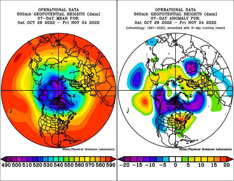 As this large low pressure tracks through the Great Lakes and into southeastern Canada around midweek a lobe of the tropospheric polar vortex will begin to drop into western and central Canada. Prolonged cross-polar flow will bring quite a bit of Siberian air into the North American side of the North Pole: