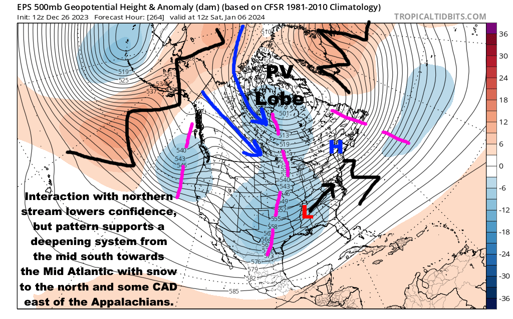 Right now, it’s quite a good set-up north of the Mason-Dixon line, especially inland, but if the Pacific side trends a bit better could become something interesting in the lower Mid Atlantic or Southeast.