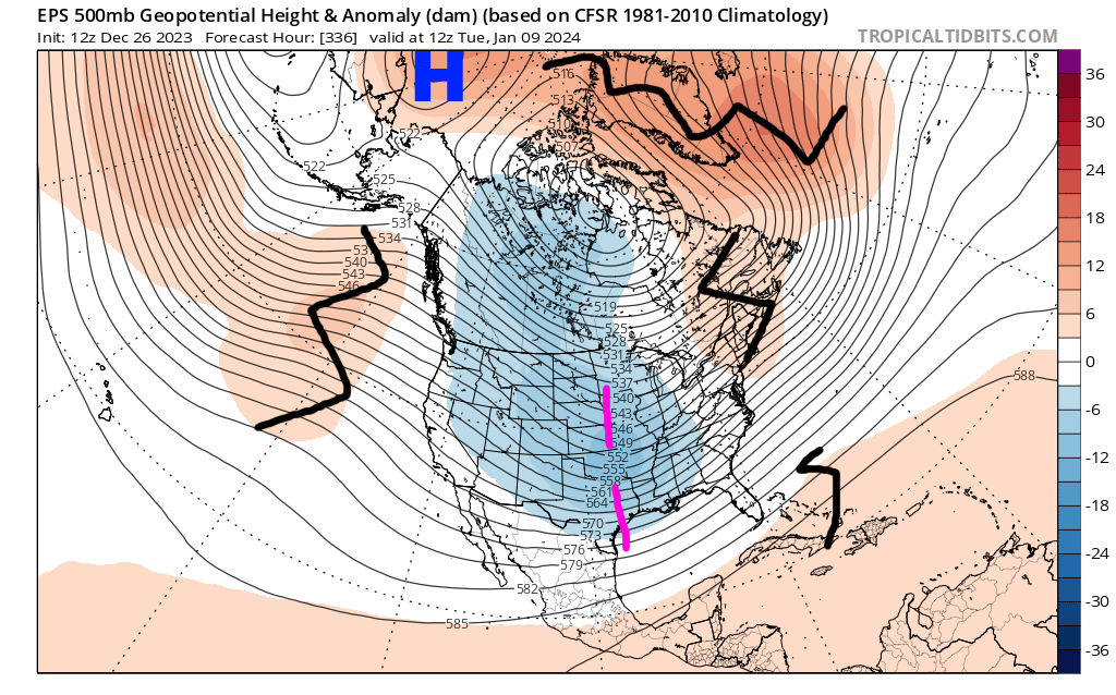 EPS analyzed and forecast 500mb heights from December 30 through January 20. Tropicaltidbits.com