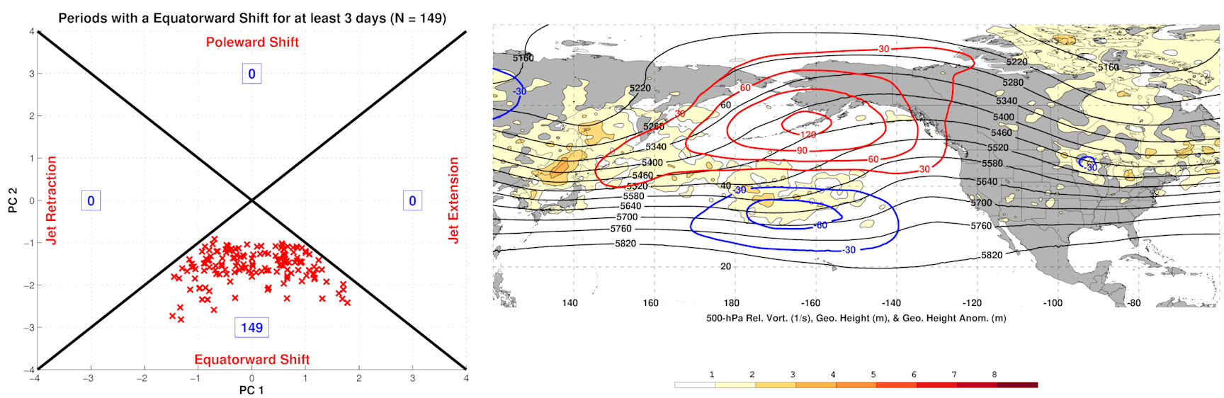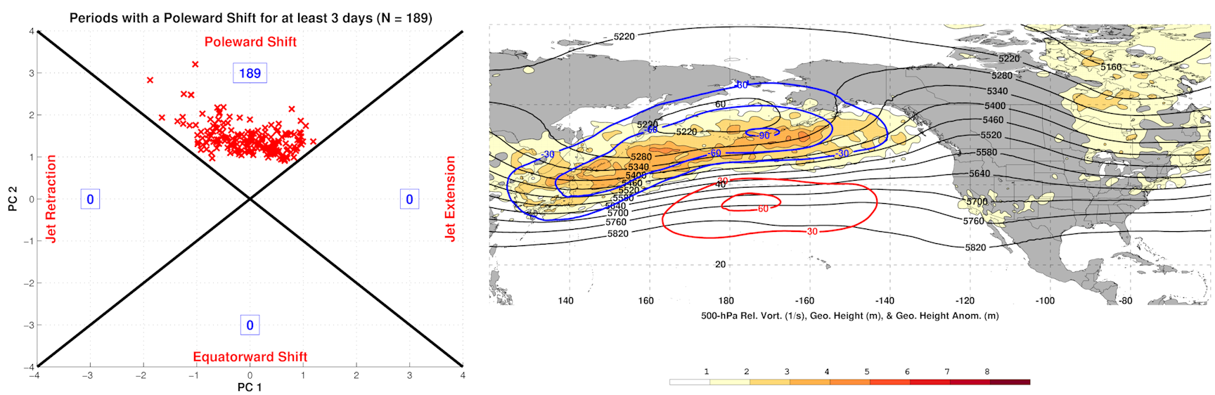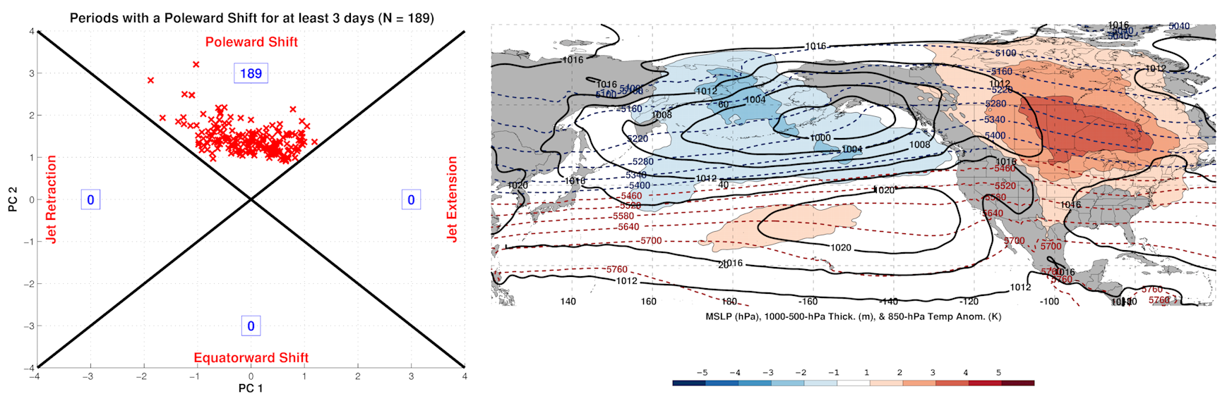 On the Rocky Mountain/Atlantic side, an initially -RMT also trends more positive late in the loop, which favors a stronger jet into the Atlantic and generally makes it harder to sustain blocking.