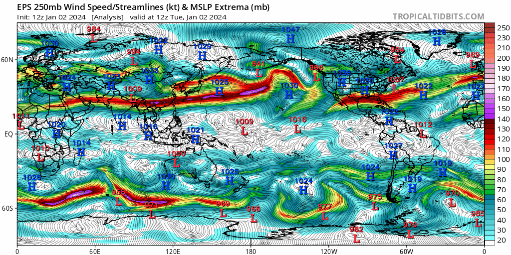 Keep these mountain torques in mind when viewing a 250mb wind mean EPS forecast loop valid the same timeframe as the above MSLP anomaly loop:
