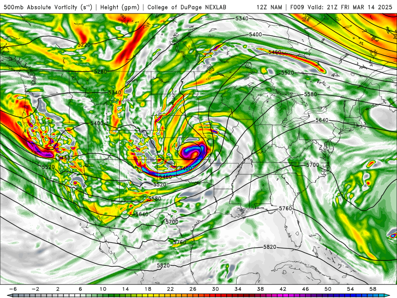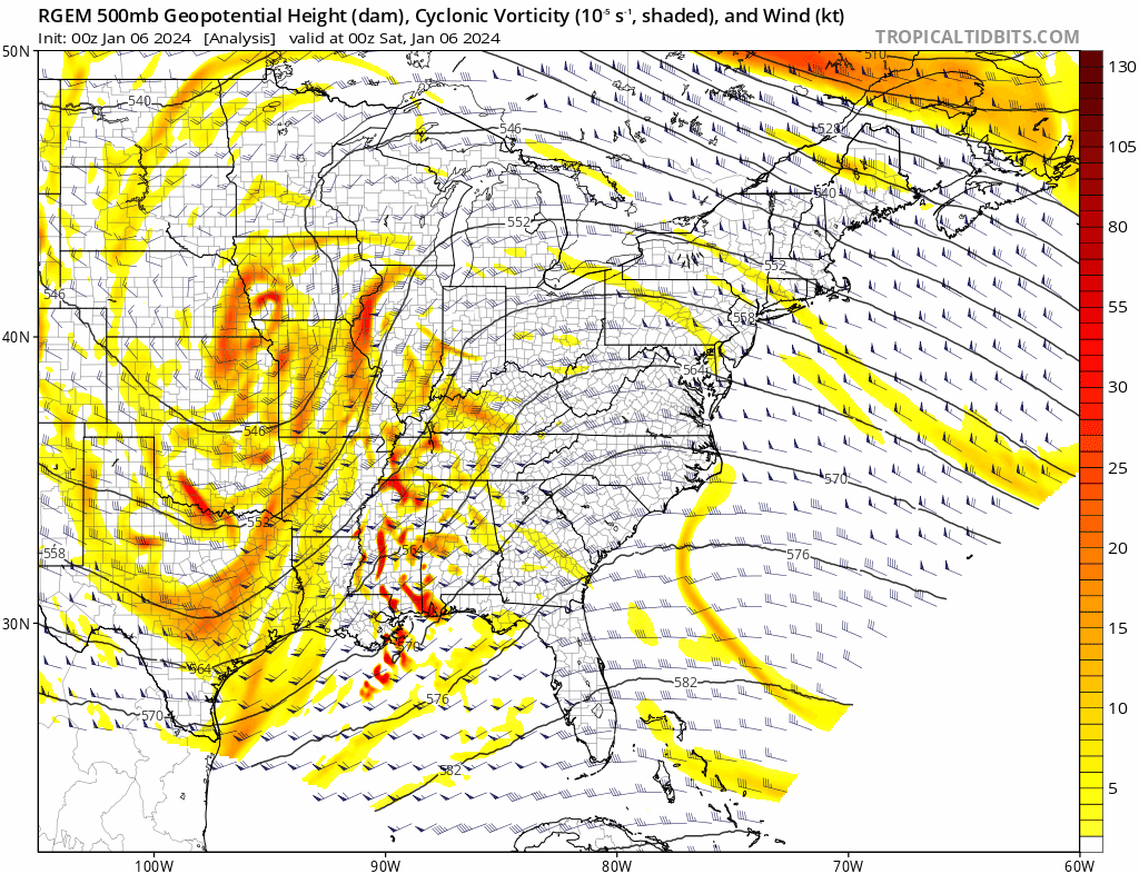 RGEM model 500mb height and vorticity loop through Sunday evening