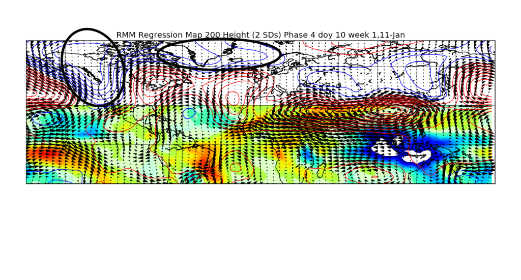 Typical MJO Phase 4 influence in mid January