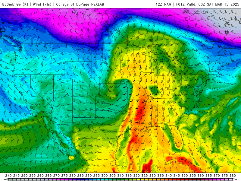 Activity in the Deep South will be driven largely by a rich low-level jet, though even some of that lifts into the upper Mississippi Valley after 0z: