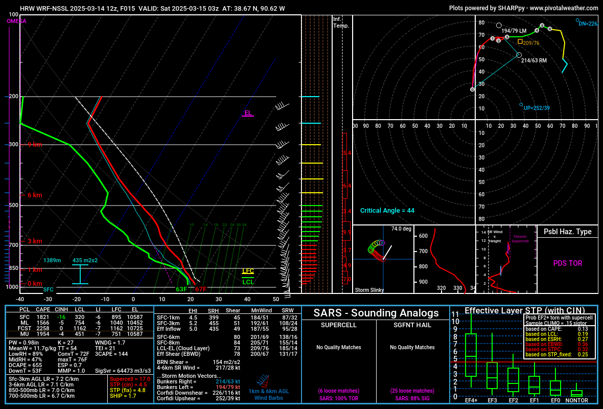 While the low-levels aren’t extremely unstable they’re unstable enough, with 1500 J/KG of MLCAPE being fully sufficient for significant severe weather and tornadoes. The low-level flow could still be more backed (and may locally back more than this), though even without it the increased low-level shear after 0z increases effective SRH notably. Any bowing segments in this environment would be capable of swaths of sig wind damage and tornadoes as well…however, the main concern is if semi-discrete cells interact with this environment as some signs point to. Strong tornado potential is evident, though there are subtle limitations which may keep the ceiling for this event from blowing into the stratosphere.