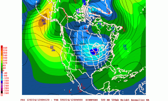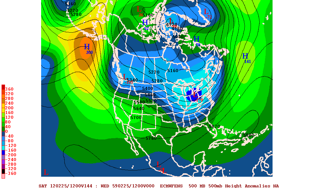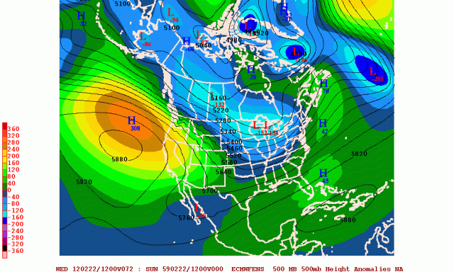 - The strongest ridging is extending up into western Alaska. This is farther west than what those of us in the northeastern US would like to see, because it favors lower than normal heights over the western US, which does not support a deep, sustained trough over the eastern US.