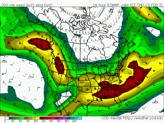 Eventually, the jet streak associated with the shortwave diving into the Plains will partially phase with the subtropical jet stream…and although the cut off energy that has been previously discussed will remain out of the picture and over Mexico through the duration of this event, the phasing of the northern branch jet streak with the subtropical jet stream will create a 150kt speed max in the upper level jet stream, and the large scale lift in the left-exit portion of this powerful jet streak will allow the storm to deepen.