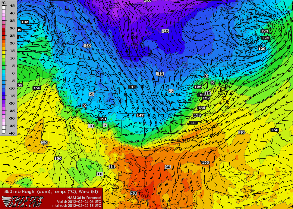 To illustrate a point, also note the 18z NAM’s depiction of converging mid level winds and temp gradient just north of the mid level low: