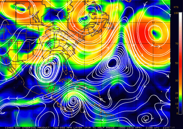 However, given the gyre origins of the system, a looser, weaker system is probably more likely until the system clears the Caribbean around mid-week. Given the amount of time the system will sit in the Caribbean and the generally favorable environment for organization/intensification, I am fairly confident a tropical cyclone will form near or south of Jamaica over the next two to three days and then lift north towards Cuba