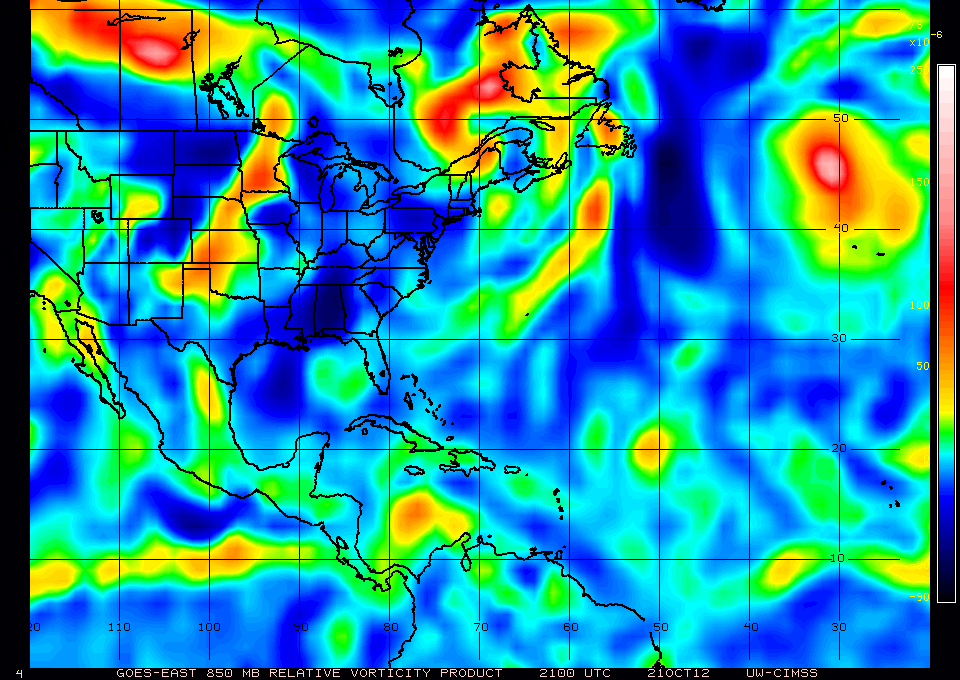 There is low level vorticity, or spin over a large chunk of the central Caribbean Sea associated with this system. This combined with the above mentioned shear is making it hard for 99L to consolidate. However, there is a concentration of higher vorticity south of Jamaica, and this is what most models eventually spin into a tropical cyclone.
