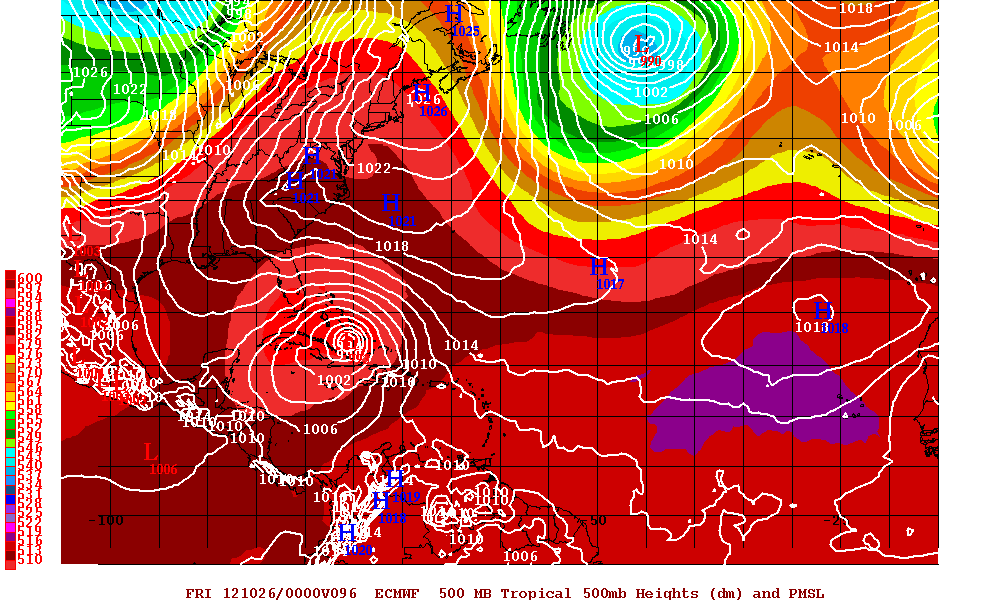 After passing Cuba, the global models show 18L interacting with strong upper level southwesterly winds. However, the models generally show the system maintaining or lower its pressure with an expanding wind field, showing that the system will get a shot of baroclinic energy, and also meaning the system will not be completely tropical: