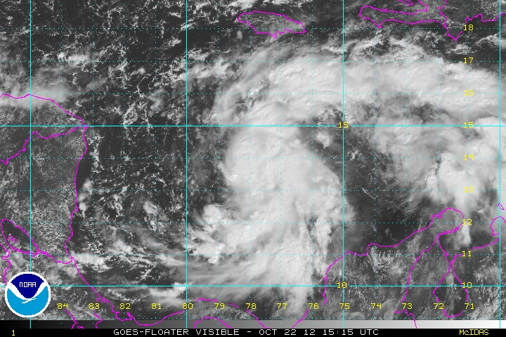 An examination of recent microwave imagery shows that there is a hint at a curved but over the northern and eastern semi-circle of the system, with the center within a few miles of 13.5N, 78W in this image per the National Hurricane Center. If the system can continue to organize banding and consolidate, it may become a tropical storm later today and will likely become a tropical storm tonight. Assuming an invest in the open Atlantic does not become named sooner, TD 18 will assume the name “Sandy” when it reaches tropical storm strength.