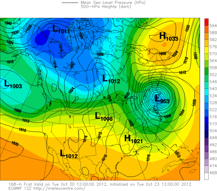 There she is, on the most recent run of the European model, the post-tropical remnants of Tropical Storm “Sandy” paying a visit to southern New England and the New York City area next Tuesday. As we slowly get closer to this possible storm, one must ask, might this actually happen? As I discussed yesterday, the models may still change into this weekend and it will be hard to lock in any kind of solution until at least Thursday or Friday. With that said, let’s break down some recent model data now:
