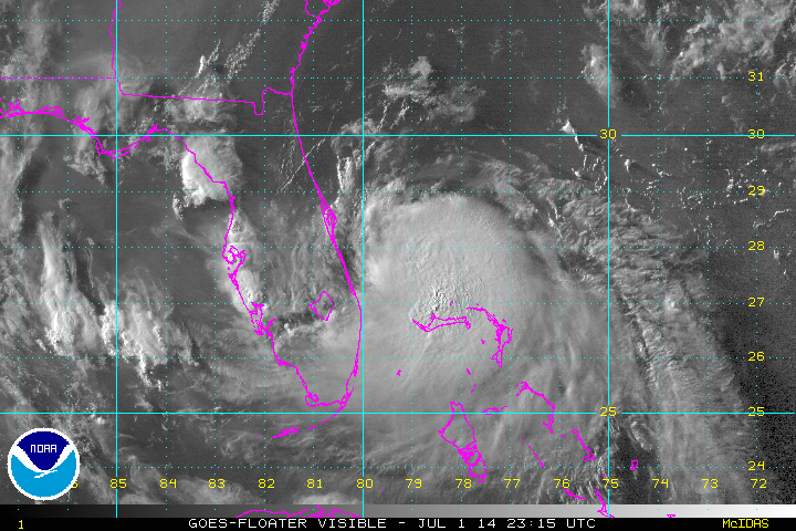 In yesterday’s post about (then) Invest 91L, I discussed what would need to occur for what is now known as Tropical Storm Arthur to potentially intensify to hurricane intensity later this week. It is looking very likely that this will happen, and some impacts will be felt across the southeastern US through Friday. Let’s take a look at what Arthur is doing now, what may cause it to intensify, and areas that may see impacts. Remember that these thoughts are just mine and shouldn’t be used for any important decisions.