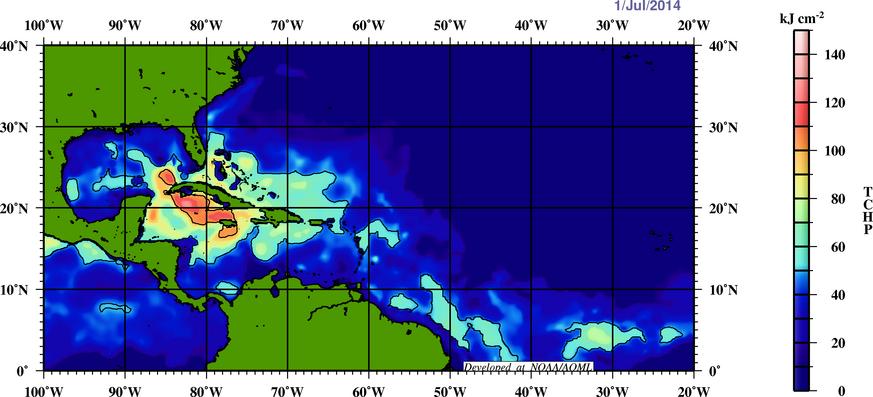 Sea surface temperatures between Arthur’s current location and the Outer Banks of the North Carolina are plenty warm for tropical cyclone intensification. However, the depth of the warm water is not extreme, as shown above. Arthur is a fairly small tropical cyclone right now, so as it begins to pick up speed over the next 12-24 hours this lack of deep warm waters may not hurt the cyclone. Essentially, once the current light northwesterly shear affecting Arthur weakens, warm enough waters given the circumstances and a favorable wind pattern in the upper levels of the cyclone favors strengthening into the day on Friday, assuming the storm doesn’t make landfall over the Carolinas before then.