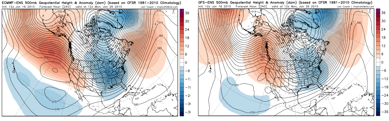 Indeed, both the GFS and European ensembles agree on a decent ridge along the West Coast in the 6-10 day timeframe: