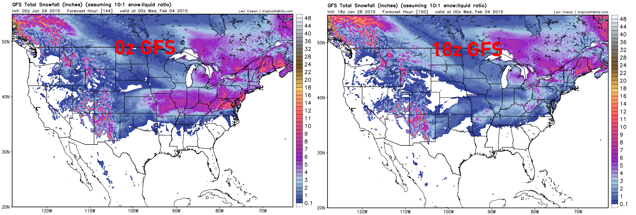 So obviously, a small change in the shortwave diving into the Rockies on Saturday and in how much of the SW US cut-off ejects east made a huge snowfall difference.