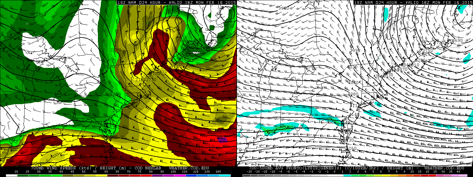 This period of favorable upper level jet support lasts about 12-15 hours (from roughly late morning Monday till 1AM Tuesday). However, the GFS/NAM show the better mid-level lift staying just south of us, which means we would struggle to see a prolonged period of moderate to heavy snow in Athens.