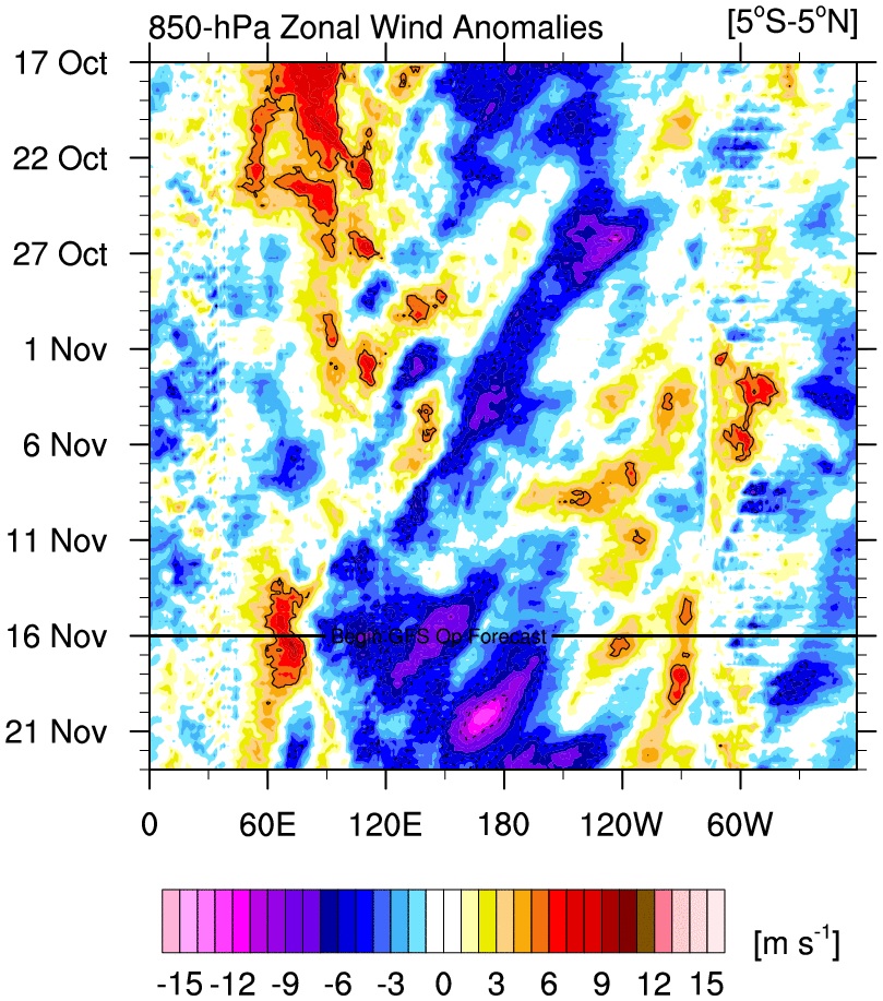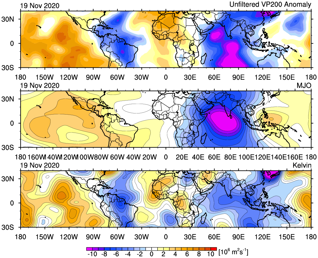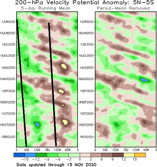 This shows a similar idea, though do note that the low-frequency forcing is strongest near Indonesia (near 120E). This signal was focused closer to 40E (much farther west) in fall of 2019.