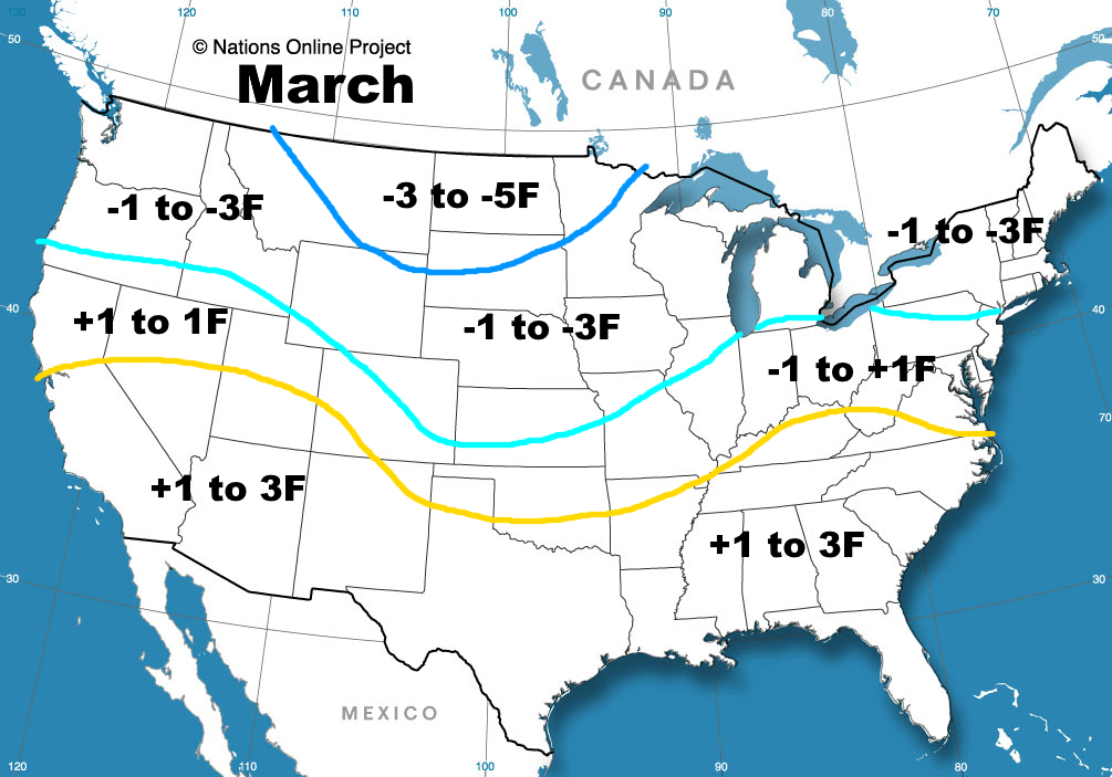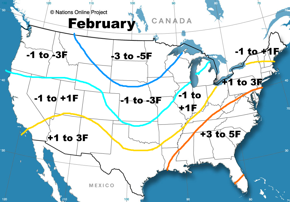 Cold air likely remains available in Canada, so if the MJO becomes active again in late-February or March it may shake-up the pattern enough to bring it south and bring one last shot of winter in March. If this does not occur early enough, the Southeast Ridge dominates much of March and keeps the cold over the Northwest, Plains, and Midwest / northern Great Lakes / northern New England.